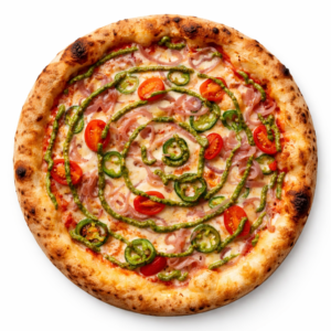 23.95CA$Tomato sauce, mozzarella, jalapeño peppers, onions, cherry tomatoes and a drizzle of ...