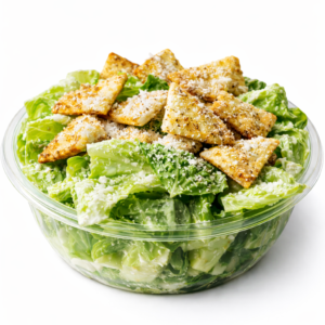 Romaine lettuce, grated Parmesan cheese, homemade pita chips, and classic Caesar dressing ...
